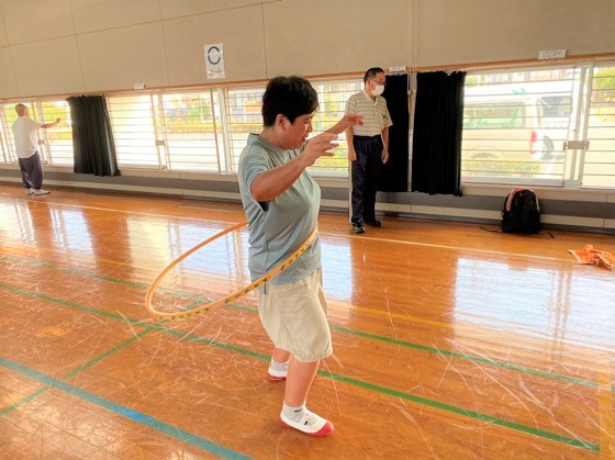 バトミントン、卓球、風船バレー、ダンス等行っています。その他、ボウリングや夏季は水泳も行っています。