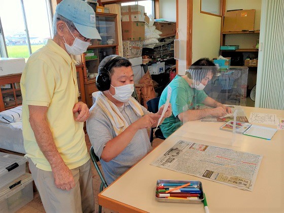 講師を迎えて月2回活動しています。塗り絵、水彩画など仲間が自由に表現する時間です。