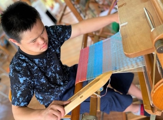 色とりどりの糸を自由に使う「さをり織り」は、指導者が教えるものではありません。