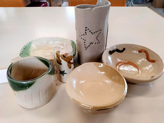 電気窯を助成金で設置し、講師を迎えて月2回活動しています。だくさんの作品が出来ています。